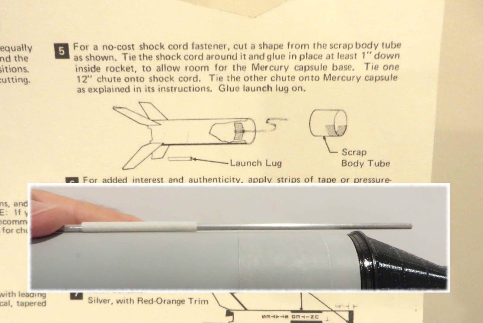 The instructions show a launch lug glued onto the body side. The problem is the widened base of the capsule.