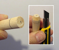 The front end of the dowel is carved to a "bullet" shape.