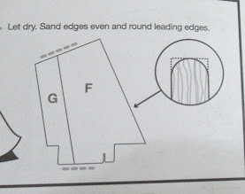 The instruction illustration shows wood glue on the sides of the fin. Too much glue will squeeze out and leave you with a mess to clean up.