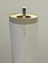 Use the lower pencil mark on the dowel as a depth gauge for the inside glue. Roll the bead of glue around the inner wall of the tube.