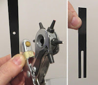 This is one way to do it, punch a hole and extend the side cut to the bottom. Mine didn't turn out well, The hole I punched was too wide. It would be better to cut the slot smaller than the 3/32" thick fin root edge and have a bit more decal to roll up and onto the fin. The old decals were brittle and it broke up while I was trying to place it. I'll have to print some new decals and try again.